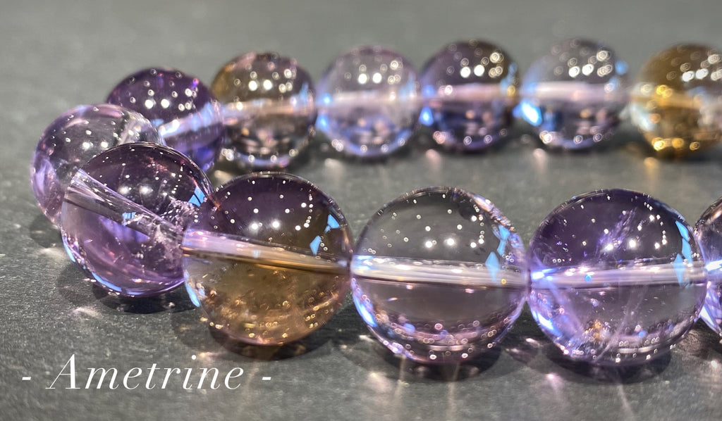 「アメトリン」という名前は、アメジストとシトリンを組み合わせて名付けられ、名前の通り二つの石が混じり合い成長した水晶です。